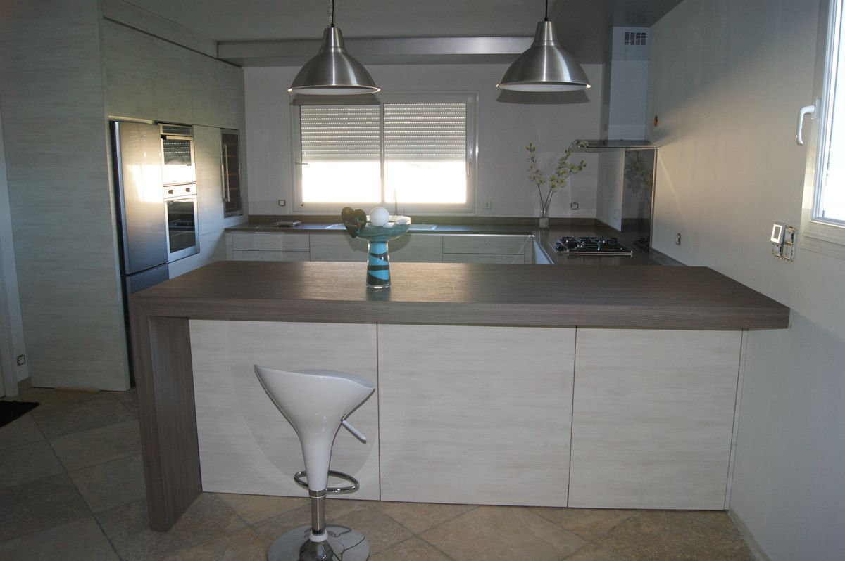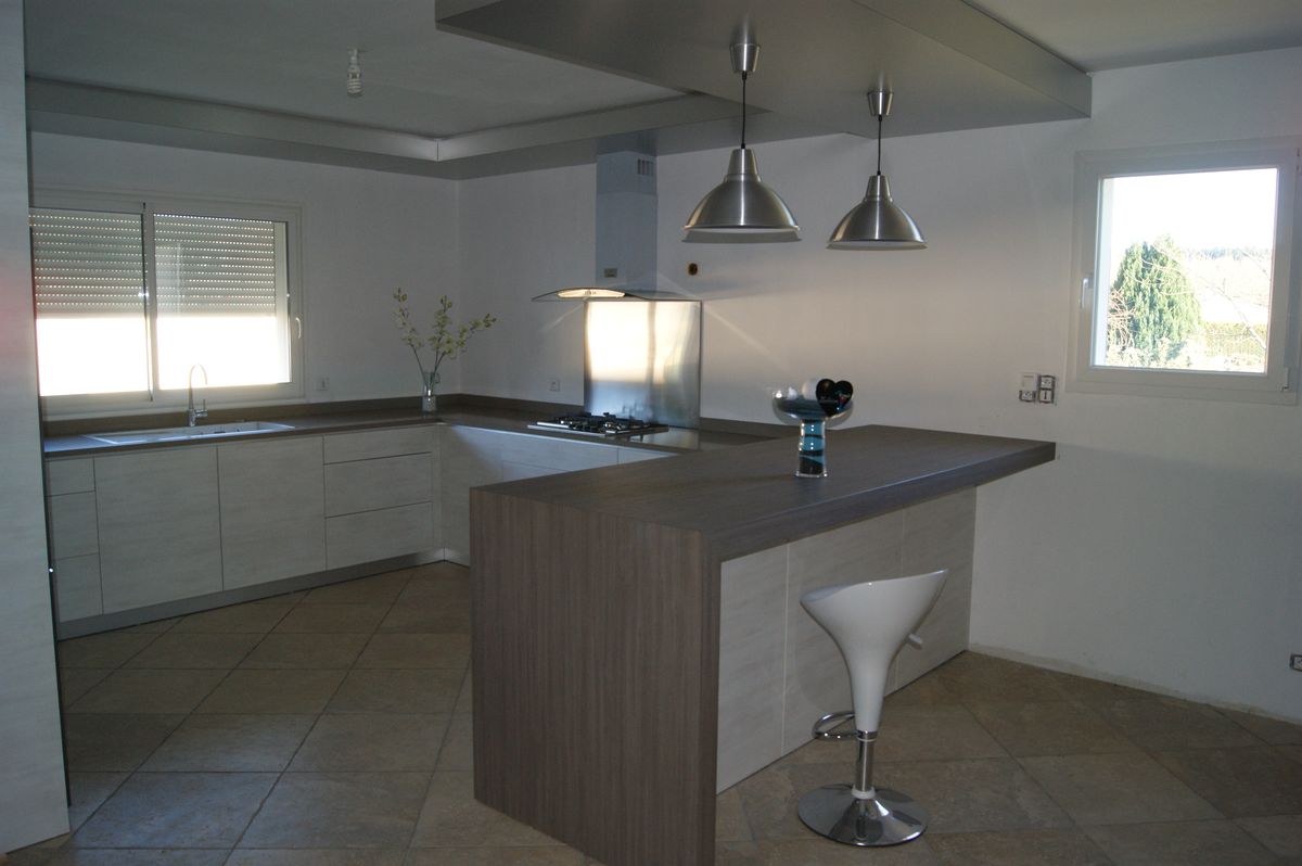 Cuisine claire, dessus pierres minérales